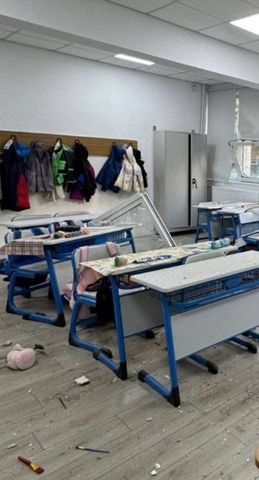 Suflul deflagrației a spulberat și geamurile liceului din proximitate.