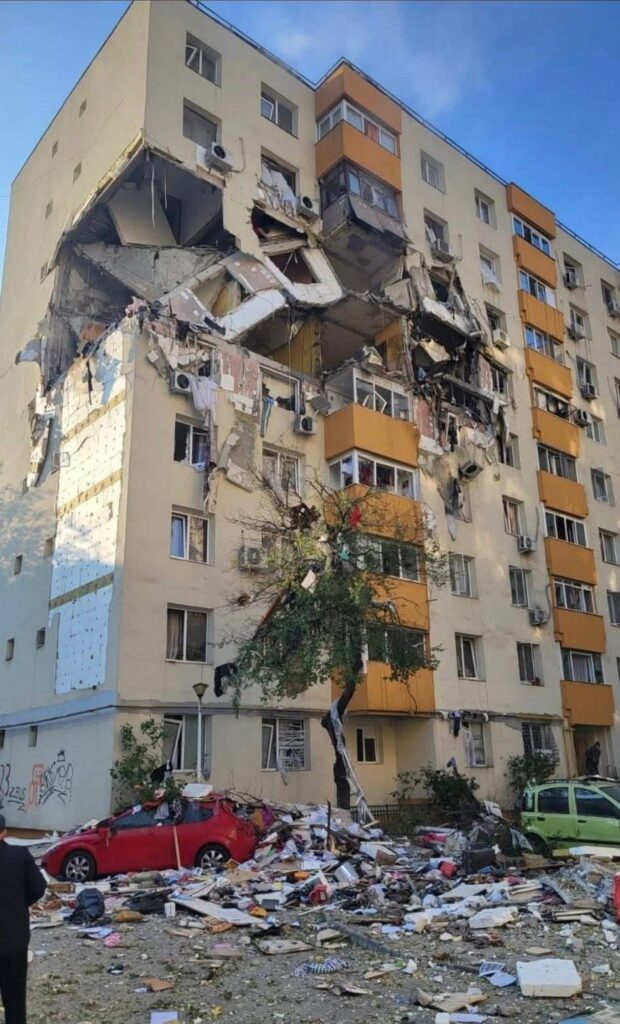 Au fost distruse mai multe apartamente de pe două etaje. Imobilul arată că și cum ar fi fost lovit de o bombă.