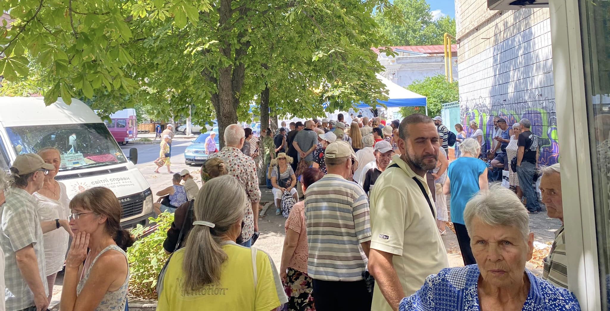 Acolo, sub sunetul rachetelor și al sirenelor antiaeriene, am realizat un interviu cu adjunctul Crucii Roșii din regiune, Arcadie Topoghian. El mi-a explicat că situația e din ce în ce mai dificilă, pentru că invadatorii rușii bombardează permanent zonele de lângă oraș.