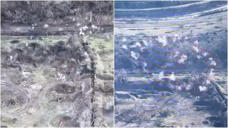 Un video publicat de forțele ucrainene, în care se arată filmat din dronă un atac asupra unor poziții și tranșee rusești, a stârnit o dezbatere în rândul observatorilor privind tipul de muniție folosită în atac.