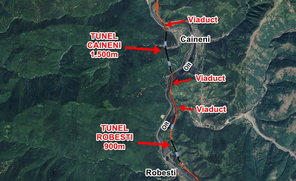 Un tronson, în special, va fi cel mai spectaculos: Pe sensul de circulație dinspre Sibiu spre Pitești al autostrăzii, pe circa 5 kilometri în zona Câineni – Robești, „se vor executa cele mai spectaculoase lucrări ale proiectului, fiind vorba de o succesiune de tuneluri și poduri care traversează râul Olt de două ori”, potrivit informațiilor transmise de Compania de Drumuri la solicitarea HotNews.ro.