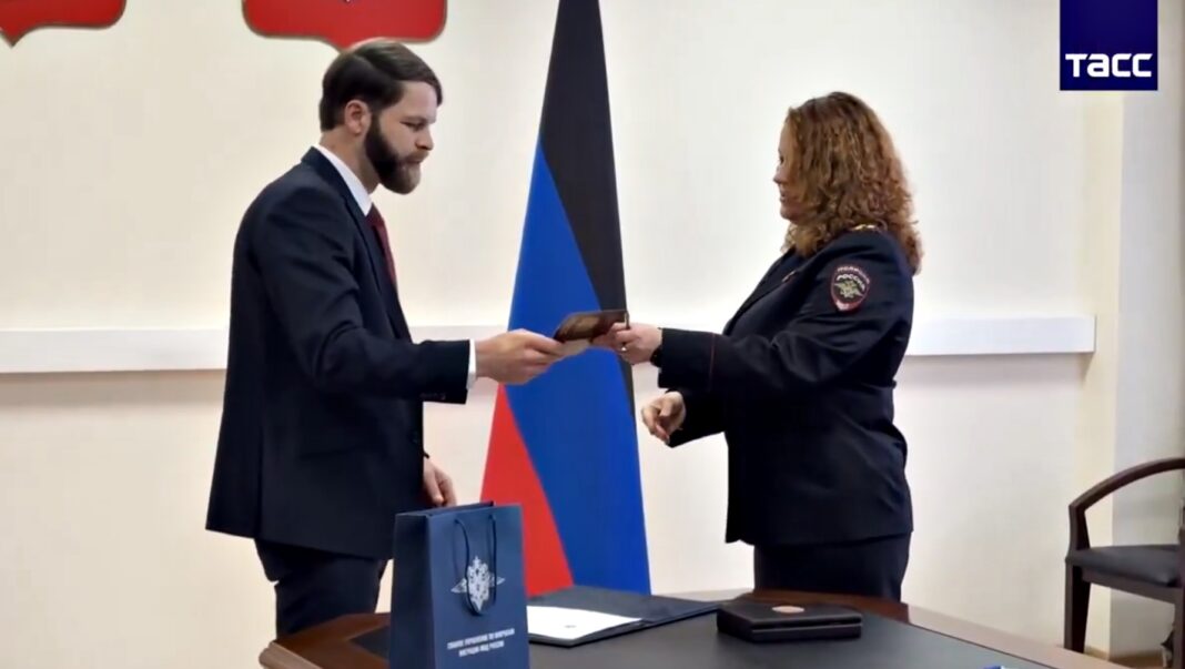 Video of Daniel Martindale, an American man who allegedly spied on Ukrainian infrastructure in the Donetsk region for Russian intelligence for 2 years before being extracted last year, receiving Russian citizenship today (apparently). He thanked Putin. pic.twitter.com/lHQShwIK9e