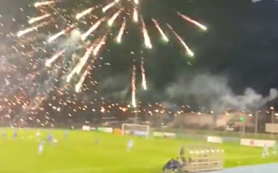 Artificiile au explodat la câţiva metri de jucători, aceştia oprindu-se din joc. Arbitrul a întrerupt partida și a așteptat instalarea calmului pe teren.