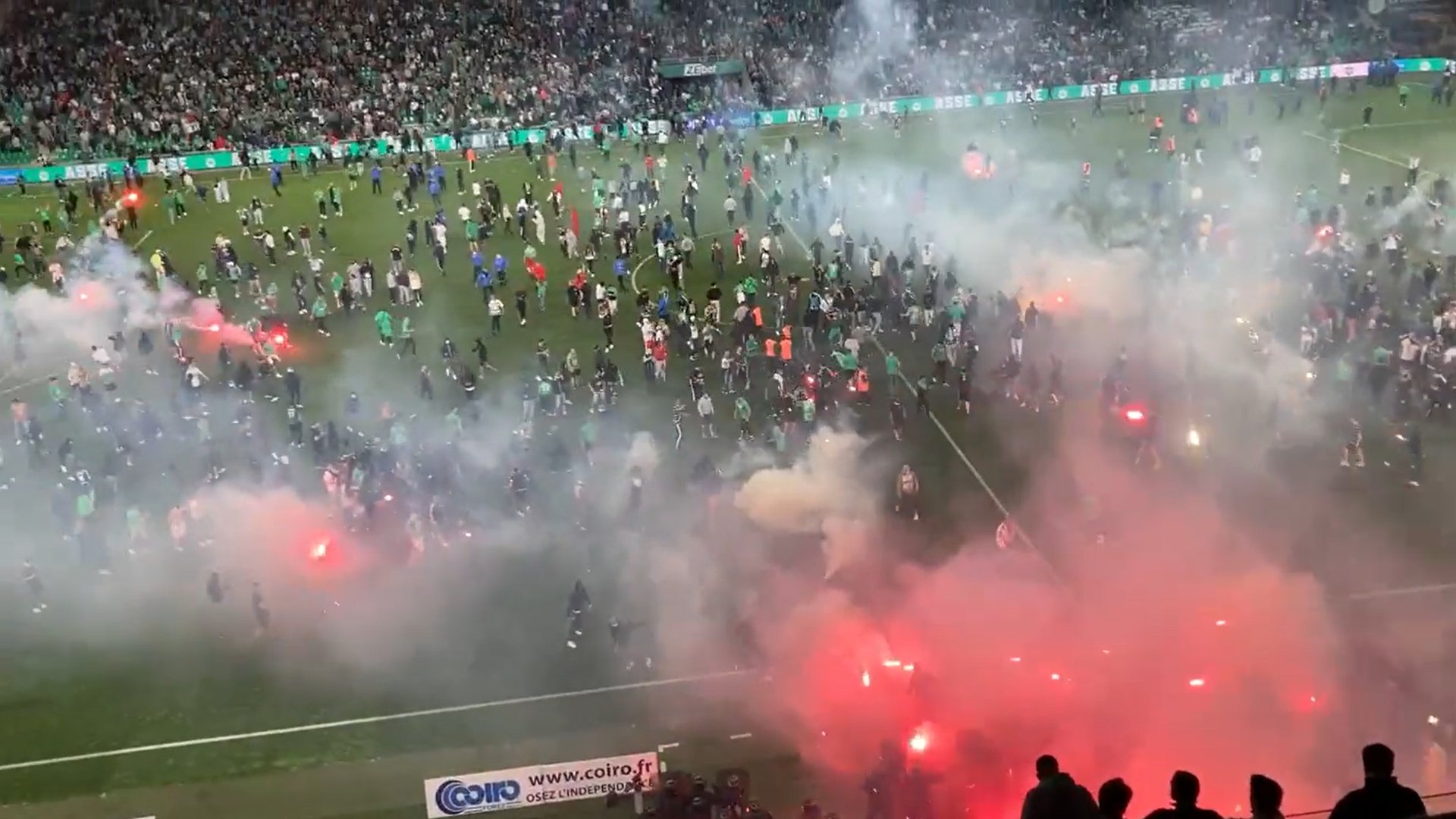 După lovitura de departajare care i-a adus promovarea echipei Auxerre, fanii au invadat terenul. Pe Twitter au apărut informaţii că jucătorii învingătorilor au fost atacaţi de fanii echipei Saint-Etienne, scrie News.ro.