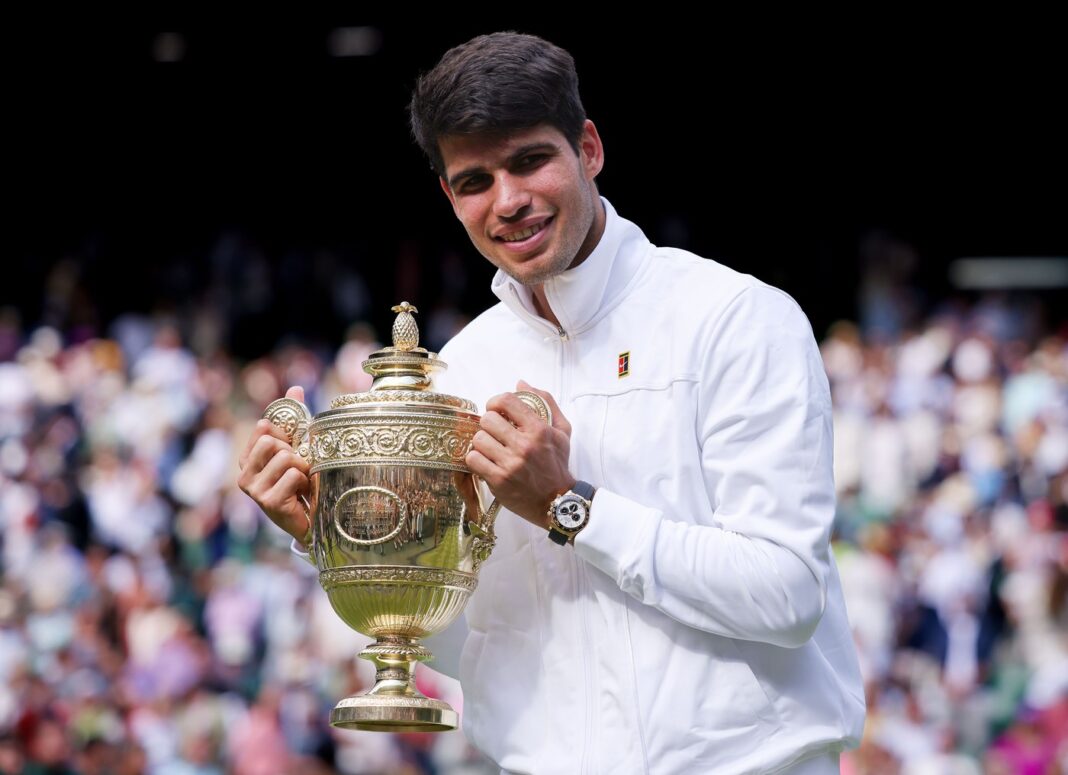 Spaniolul Carlos Alcaraz, locul 3 ATP, a câştigat duminică, pentru al doilea an consecutiv, turneul de Grand Slam de la Wimbledon, învingându-l în finală pe sârbul Novak Djokovic, numărul 2 mondial, notează News.ro.