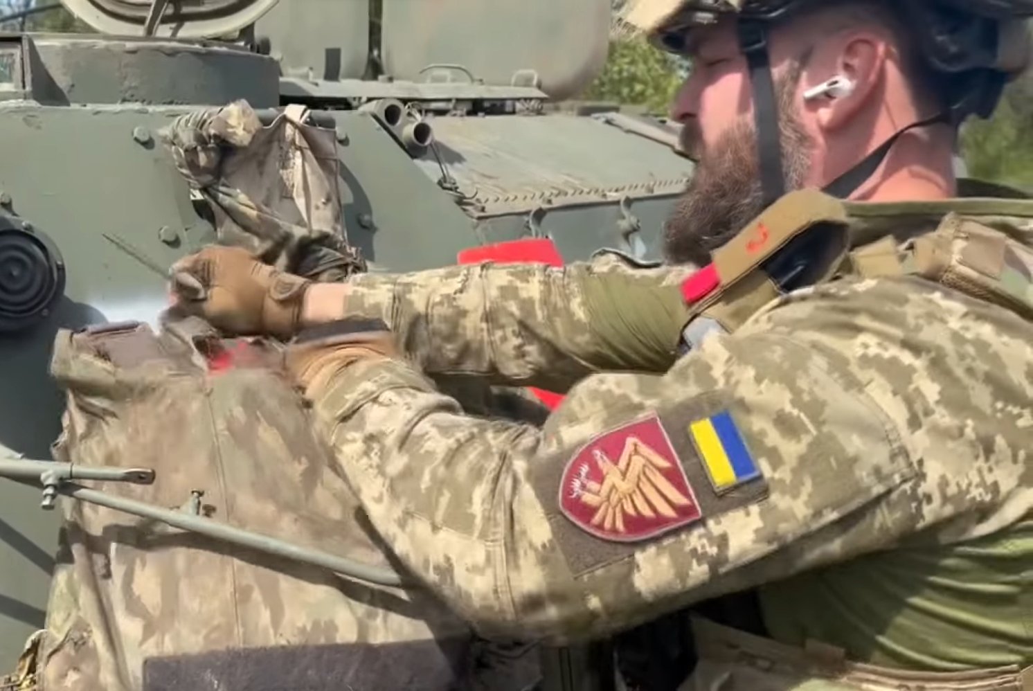 „Priviți ce are a două armată a lumii”, spune unul dintre soldații ucraineni, care taie cu un cuțit materialul textil și scoate afară bucată de metal semi ruginită.