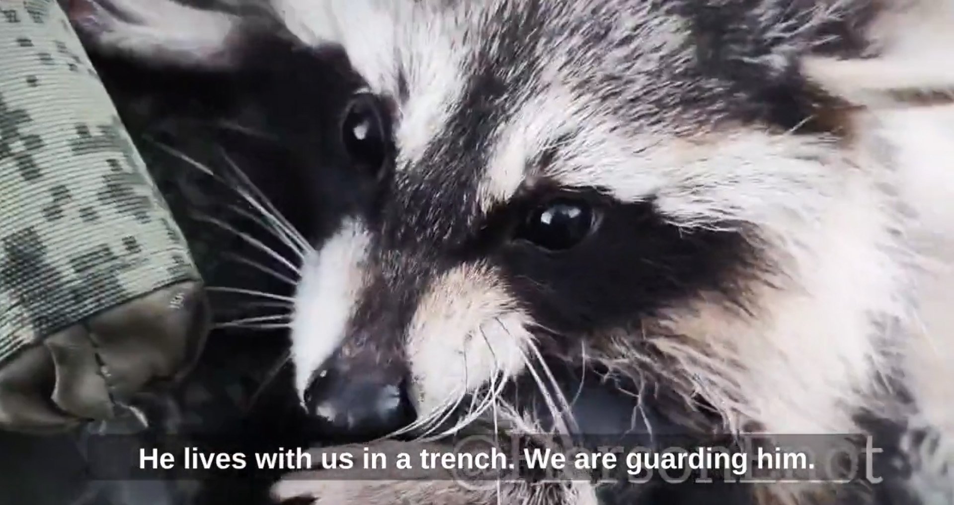 Deși nu este clar unde a fost filmată sau dacă este într-adevăr vorba de același raton, soldații ruși susțin că animalul a ajuns să trăiască cu ei în tranșee.