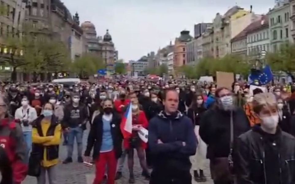 Păstrând distanţarea socială pentru a respecta reglementările impuse ca urmare a pandemiei de COVID-19, protestatarii s-au adunat în piaţa Wenceslas din Praga, susţinând că politica preşedintelui Zeman împinge Cehia în braţele Rusiei.