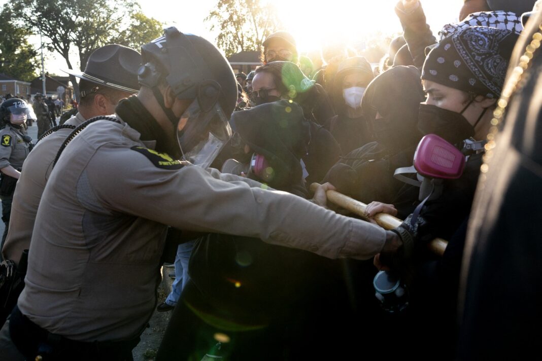 În fața centrului de detenție din Broadview, în spatele barierelor ridicate de ICE, demonstranții au protestat inițial pașnic vineri, cântând imnuri creștine și cântece evreiești. Apoi, Gregory Bovino, comandantul Serviciului american de protecție a frontierelor, care conduce efortul federal de control al frontierelor din Chicago, a sosit cu agenți dotați cu măști de gaze și vehicule blindate.