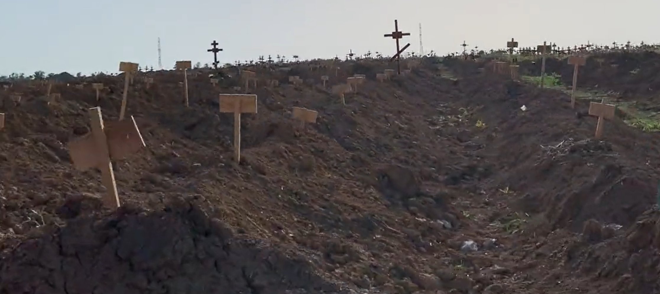 Are peste 3.000 de morminte proaspete și, potrivit Nexta, majoritatea plăcilor și crucilor sunt doar numerotate, fără a avea nume.