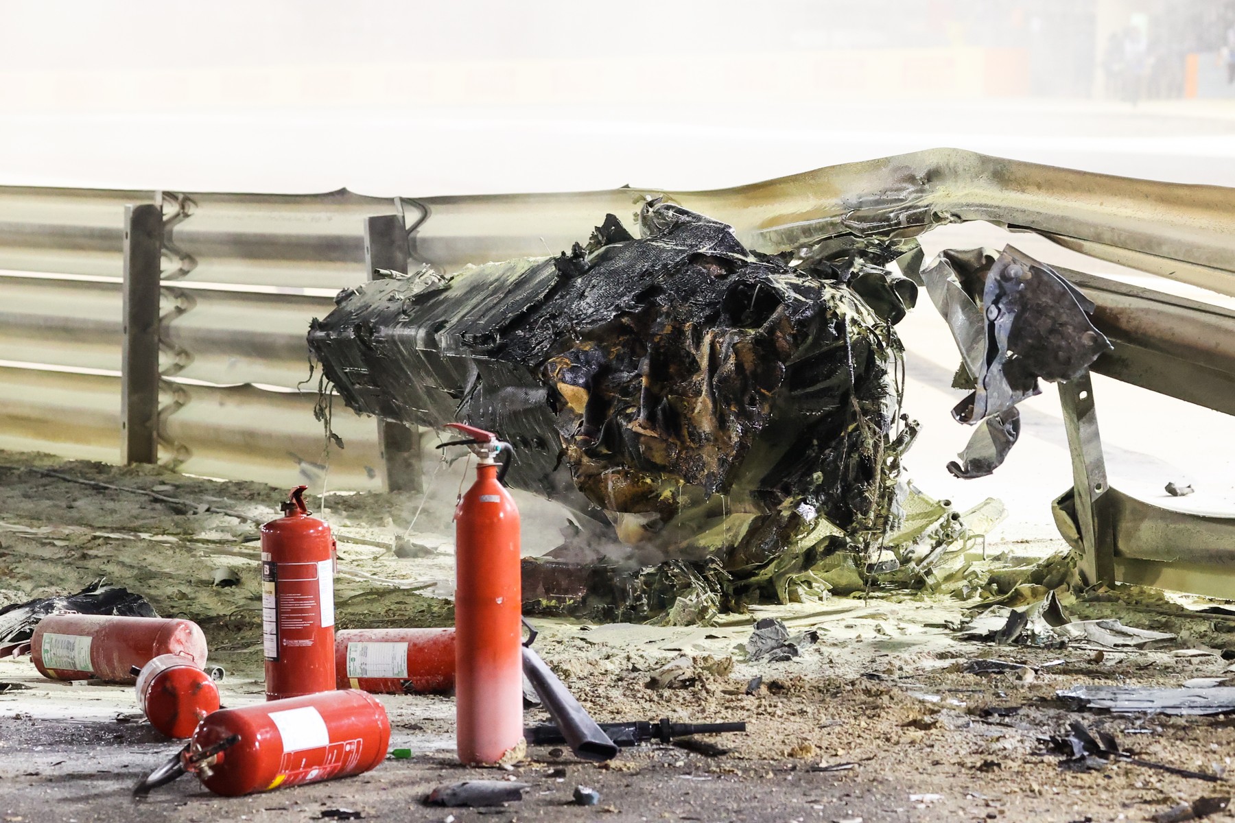 Grosjean a fost scos după câteva secunde bune în mod miraculos din flăcări și a scăpat teafăr. El a fost transportat imediat la spital.