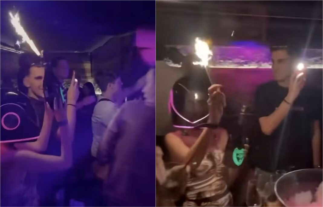 Un videoclip distribuit în mai 2024 pe YouTube de contul @ConstellationCransMontana arată femei cu căști de motocicletă mergând prin bar cu sticle de alcool pe care sunt artificii.