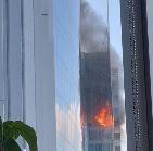 Aproximativ 60 de persoane au fost evacuate din clădirea care are apartamente şi birouri, după declanşarea incendiului la etajul 17, focul răspândindu-se la balcoanele de la etajele 18 şi 19.