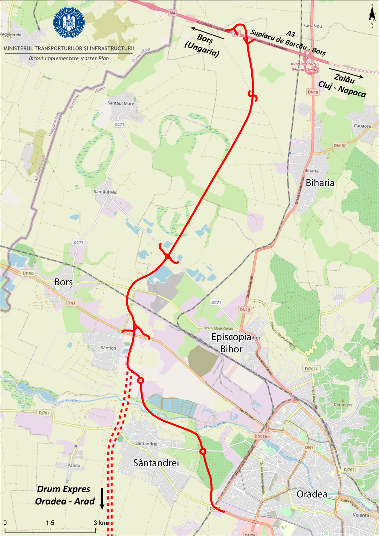 Proiectul drumului de legătură are o lungime de 18,96 km, 12 poduri noi și pasaje (inclusiv peste Crișul Repede și peste șoseaua Borșului), dar și 3 noduri rutiere. Acesta urmează să facă legătura dintre Centură și autostradă, din zona sensului giratoriu cu Calea Sântandrei spre Sântandrei – Borș – Biharia.