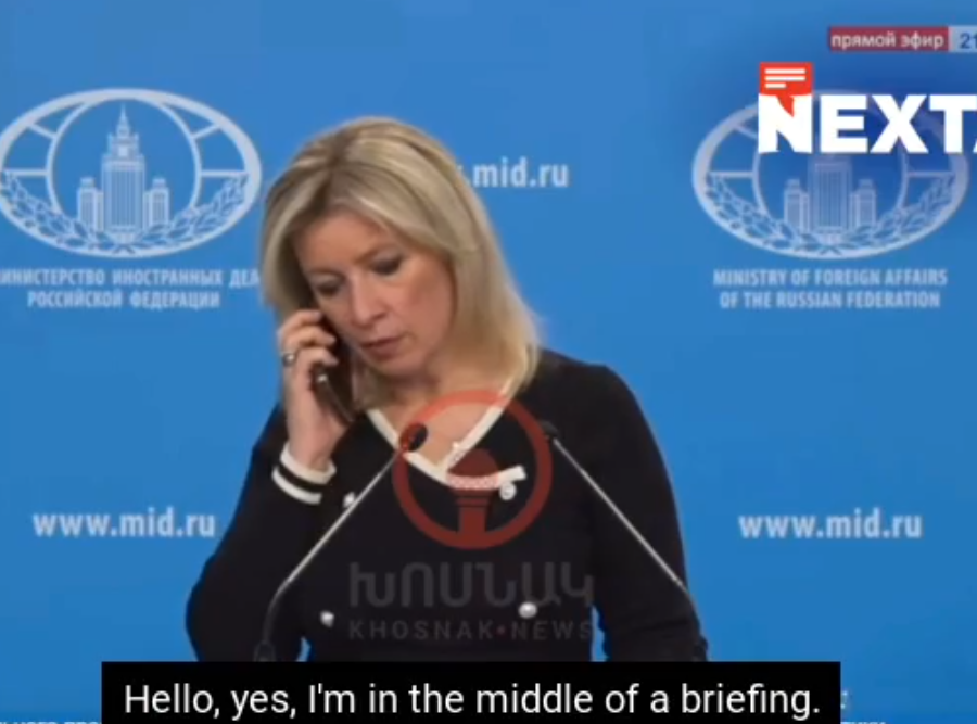 În timpul conferinței de presă la MAE rus, Zaharova a primit un apel de la o persoană necunoscută care i-a spus: