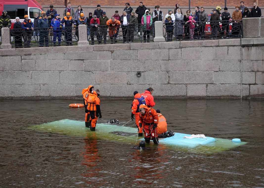 Salvatorii ruși au intervenit să recupereze victimele după ce un autobuz a căzut de pe un pod în Sankt PetersburgFoto: Dmitri Lovetsky / AP / Profimedia