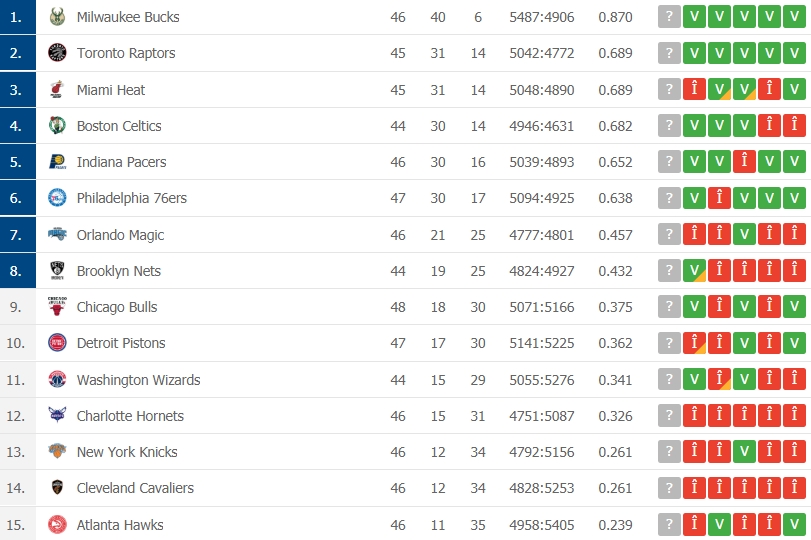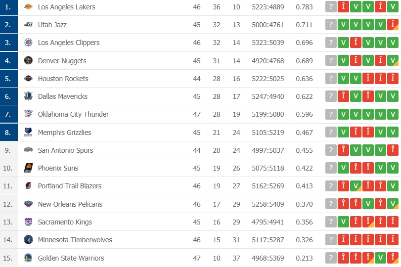 Clasamentele din cele două conferințe: