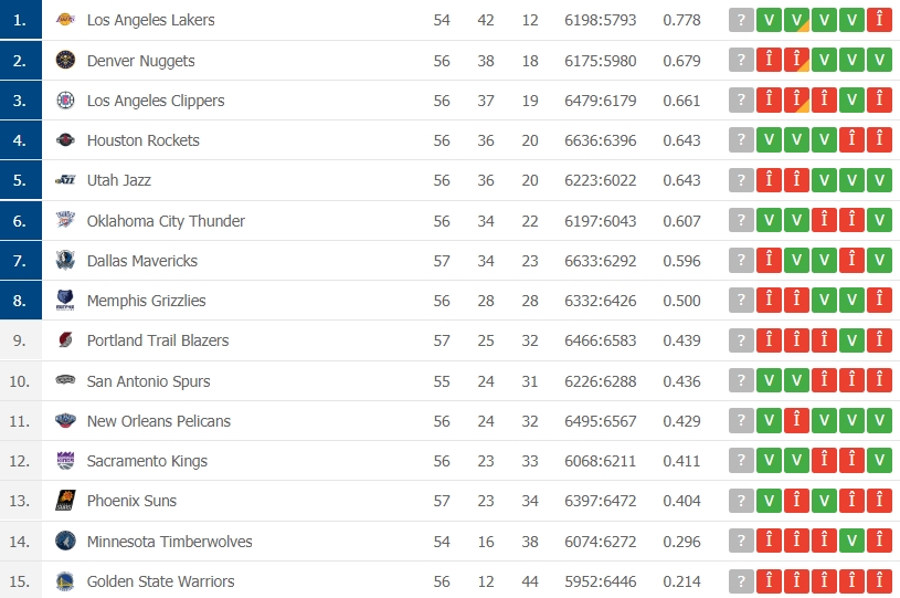 În urma meciului câștigat în „Vivint Smart Home Arena” (Salt Lake City), Houston Rockets a egalat linia de clasament a celor de la Utah Jazz (36 de victorii – 20 de înfrângeri). Cei mai buni jucători de pe teren au fost James Harden (38 puncte, 5 recuperări și 7 assist-uri) și Russell Westbrook (34 puncte, 6 recuperări și 4 pase decisive).
