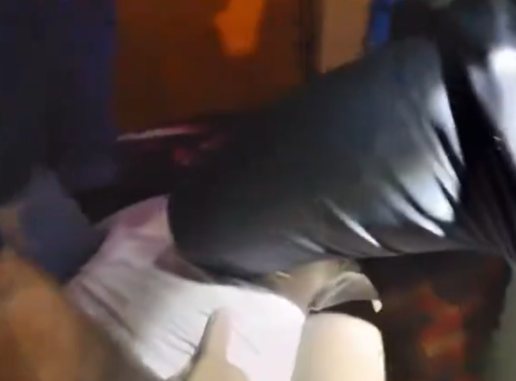 Înregistrarea surprinde apoi un poliţist care verifică dacă respiră şi îi ia pulsul.
