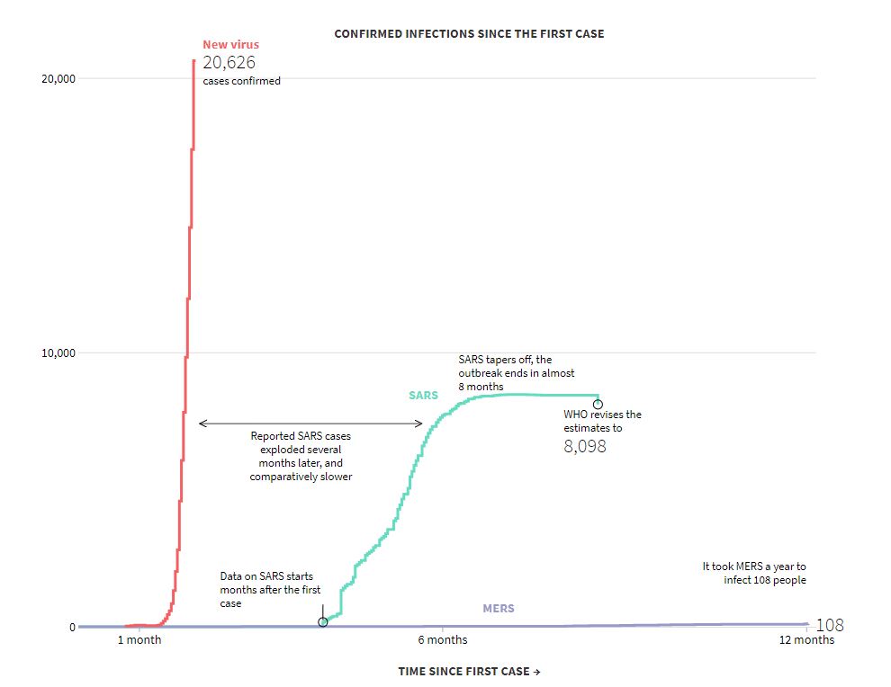 Temerile la nivel internațional sunt alimentate de răspândirea rapidă a coronavirusului și de faptul că experții tot nu știu exact cât de contagios este. În doar câteva săptămâni a infectat mai mulți oameni decât SARS în mai multe luni. De asemenea, MERS, apărut în 2012 în Arabia Saudită, a avut nevoie de opt ani pentru a infecta 2.500 de oameni.
