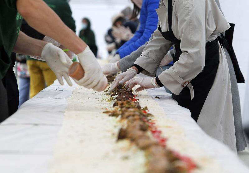 Shaorma gigant pregătită duminică la Ploieşti a măsurat 125 de metri lungime.