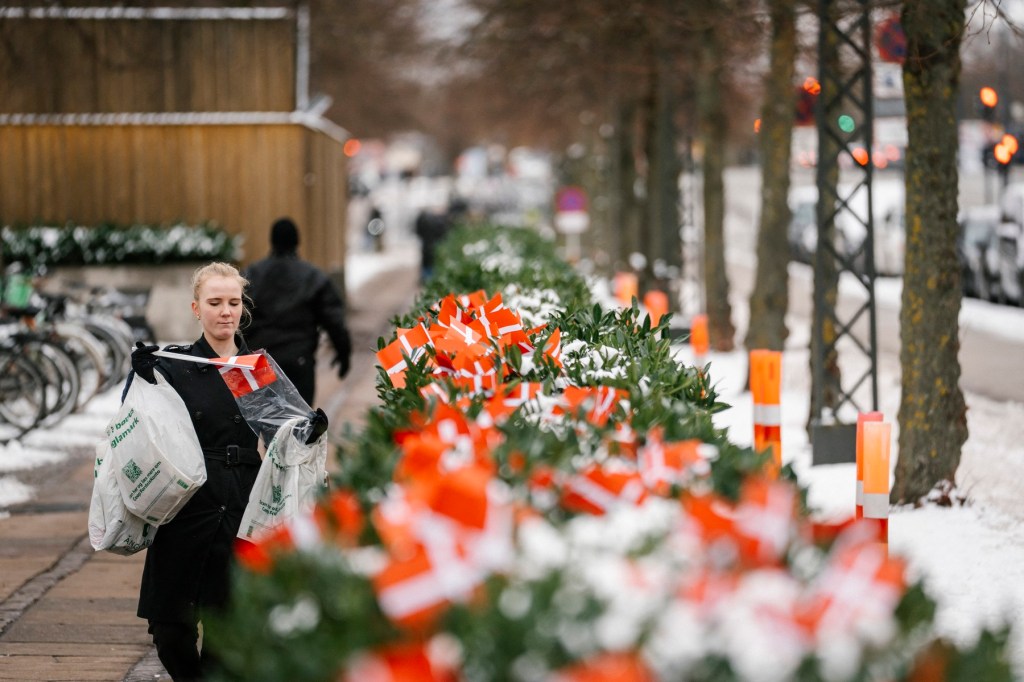 Ambasadorul american a plasat personal, vineri, cele 44 de drapele daneze în straturile cu flori.