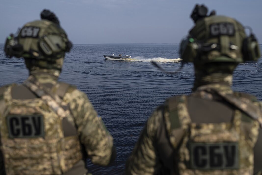 Dronă maritimă Sea Baby a serviciului ucrainean de securitate SBU. Foto: Evgeniy Maloletka / AP / Profimedia