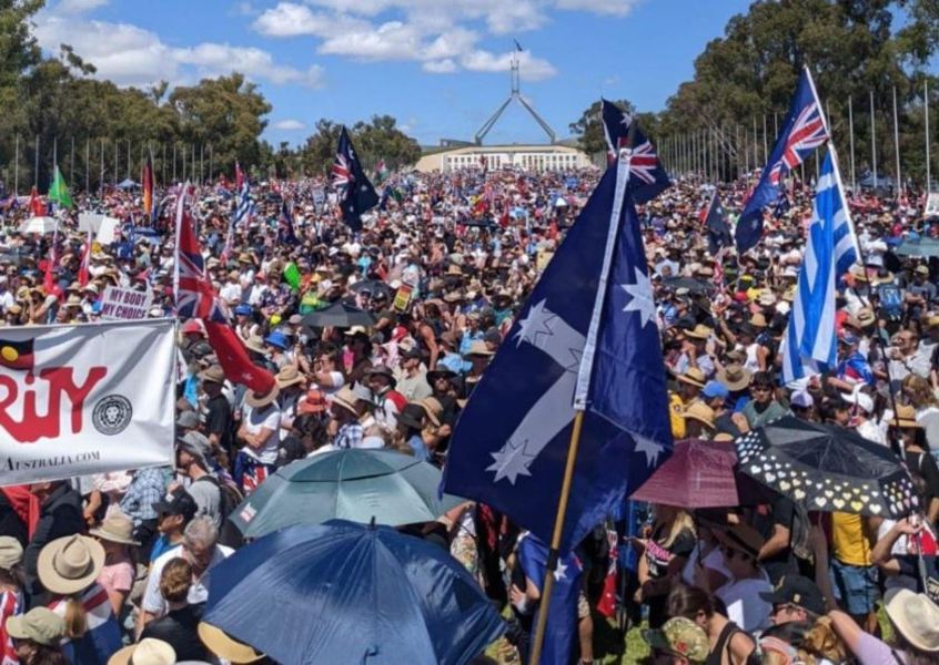 Premierul australian Scott Morrison a declarat că manifestanții au dreptul să protesteze, cerându-le totuși să o facă într-un mod pașnic și respectuos. El a precizat că majoritatea obligațiilor privind vaccinarea au fost impuse de state și teritorii, nu de guvernul federal.