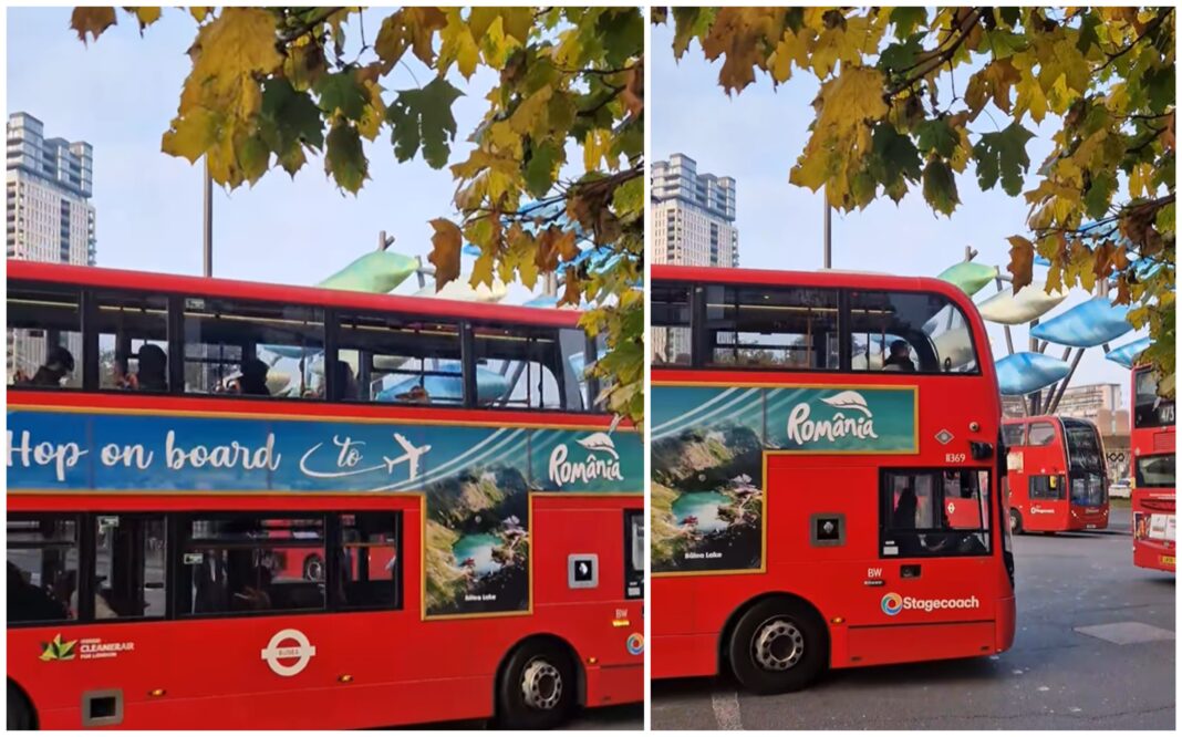 „250 de autobuze din Londra, Manchester, Birmingham și Liverpool poartă mesajul «Hop on board to România»! Campania OOH de promovare a României este organizată de #MEAT (n.r. – Ministerul Economiei, Antreprenoriatului şi Turismului) și vizează creșterea vizibilității destinației noastre în Regatul Unit. Acțiunea se va desfășura timp de o lună, în perioada 4 noiembrie – 4 decembrie”, a transmis Ministerul Turismului, într-o informare pe pagina de Facebook.