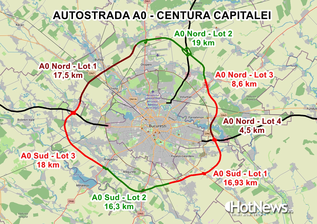 Autostrada de Centură a Capitalei – A0 / Loturile verzi sunt singurele complet finalizate