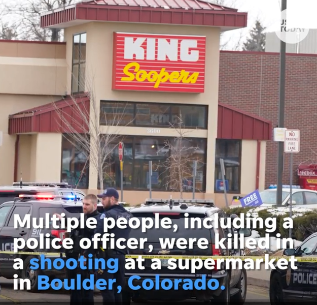 Imagini difuzate în direct în cursul vastei operaţiuni a poliţiei în jurul supermagazinului King Soopers au arătat cel puţin o persoană, un bărbat alb doar în pantaloni scurţi de sport, pe cale de a fi escortat de poliţişti în afara magazinului, cu mâinile încătuşate la spate şi aparent uşor rănit la picior, cu urme de sânge.