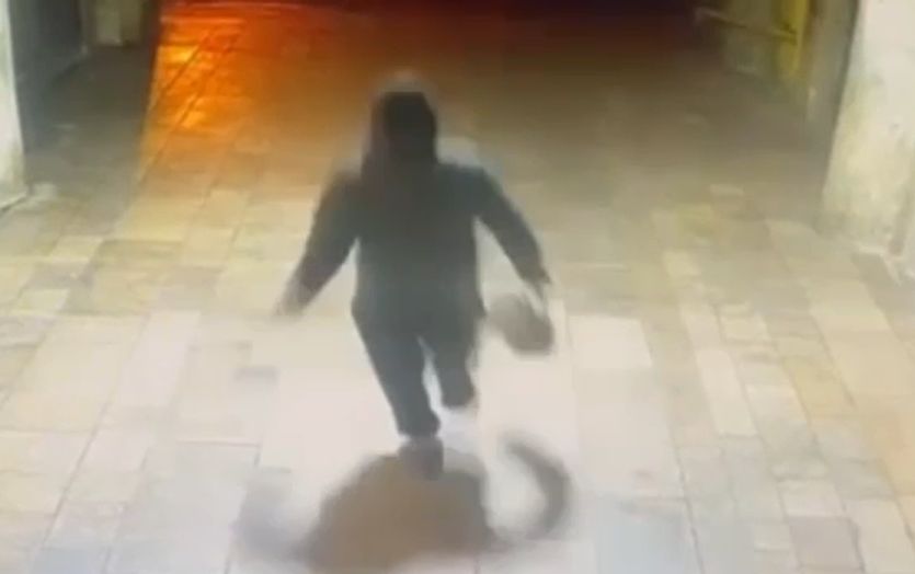 Imagini cu suspectul care fuge pe aleea de acces a unui bloc al unui bloc au fost surprinse de camerele de supraveghere.