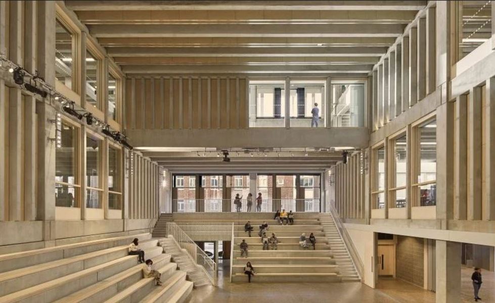 Clădirea cu şase niveluri din sud-vestul Londrei este concepută pentru a primi studenţii, localnicii şi vizitatorii. Cuprinde un forum public, o bibliotecă şi un studio de dans şi teatru, dar şi terase deschise şi grădini pe acoperiş.
