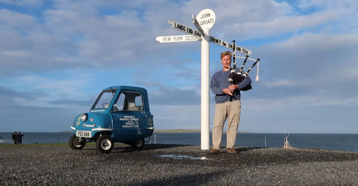 Este considerat a fi prima dată când acest drum este parcurs într-un Peel P50. Maşina are 137 de centimetri lungime, 120 înălţime şi cântăreşte 59 de kilograme.