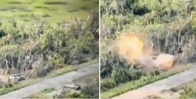 O altă înregistrare video distribuită marți pe rețelele de socializare a surprins din nou cum un blindat rusesc trece inexplicabil peste o mină deși alte două vehicule blindate sunt abandonate imediat lângă ea.