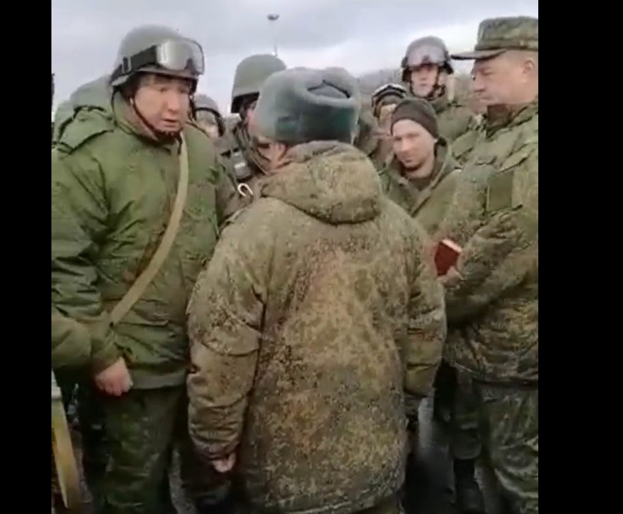 Continuation of the story with mobilised soldiers from the Moscow region aggressively talking to the officer about their lack of proper equipment and treatment.