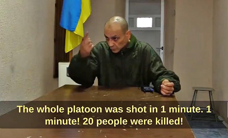 „Întreg plutonul a fost împușcat într-un minut. Într-un minut! 20 de oameni au fost uciși. Dau mai degrabă zis, au murit. Nu poți spune că au fost uciși, și noi aveam arme-n mână. Asta e, haos complet”, spune rusul capturat într-un dialog filmat de ucraineni.