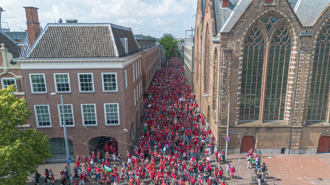 Zeci de mii de oameni au ieșit în stradă la Haga, duminică, pentru a protesta împotriva asediului israelian din Gaza și a politicii guvernamentale olandeze față de război, relatează Reuters.