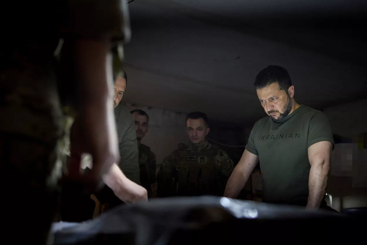 Volodimir Zelenski într-o vizită pe linia frontuluiFoto: Pool /Ukrainian Presidentia / Zuma Press / Profimedia