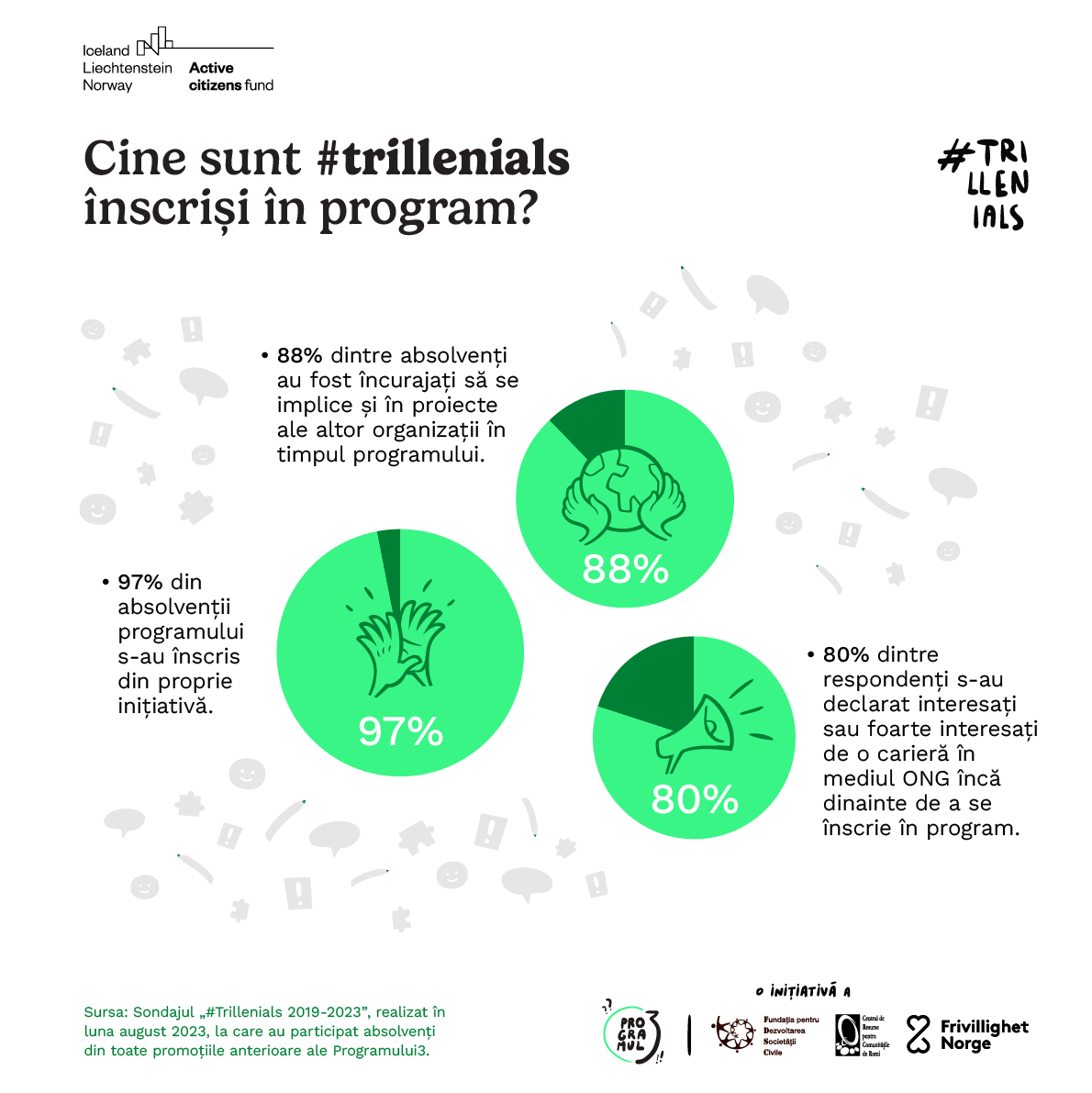 • #Trillenials sunt noua generație de tineri ONG-iști care doresc să contribuie activ la dezvoltarea societății civile din România și din rândul cărora se vor recruta viitorii lideri ai sectorului terțiar