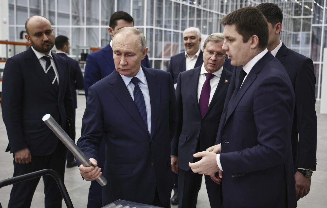 Președintele rus Vladimir Putin vizitează centrul de cercetare și producție din Samara, Rusia, pentru sisteme de aeronave fără pilot (drone), pe 28 ianuarie 2025.