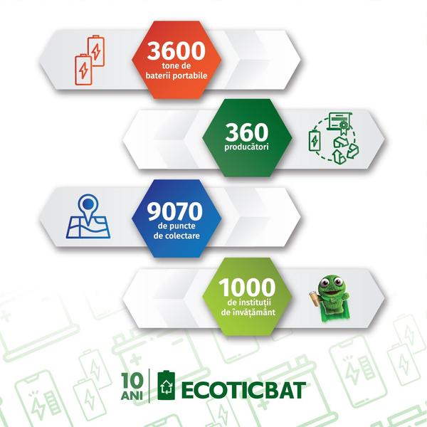 ECOTIC BAT împlinește în acest an 10 ani de activitate în managementul deșeurilor de baterii și acumulatori uzați. În această perioadă, ECOTIC BAT a colectat și reciclat peste 3600 tone de baterii și acumulatori portabili, în numele a celor peste 360 de producători afiliați.