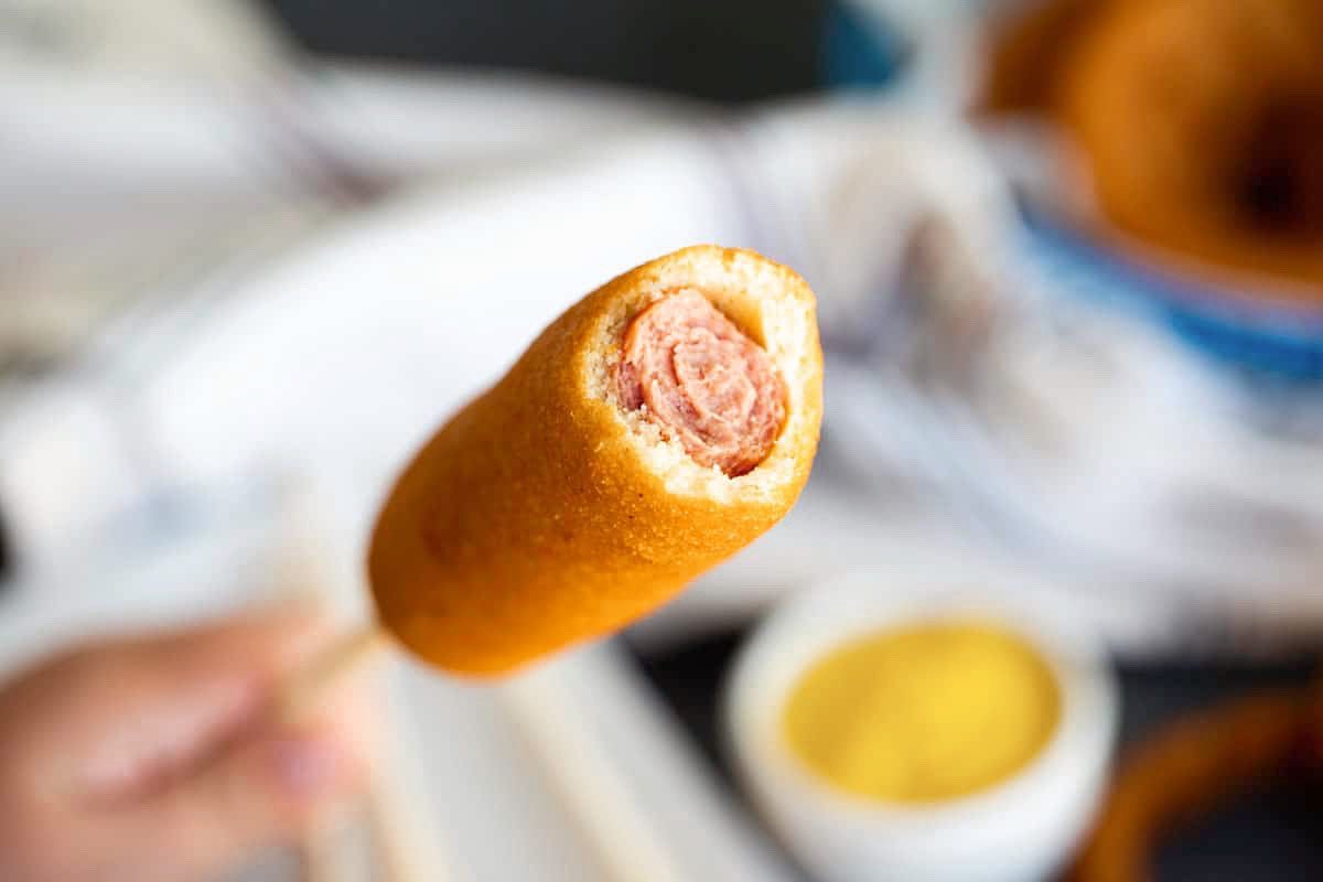 Este vorba de un corndog la Corndog Caravan, un food truck în care gătește chiar un american și care e parcat pe terasa Hop Hooligans Taproom (Jean-Louis Calderon 49).