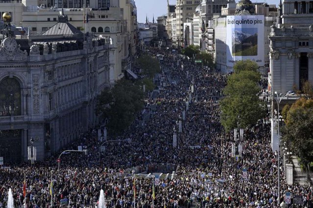 În noiembrie, zeci de mii de oameni au mărşăluit prin centrul Madridului în sprijinul lucrătorilor din domeniul sănătăţii care cereau condiţii de muncă mai bune.