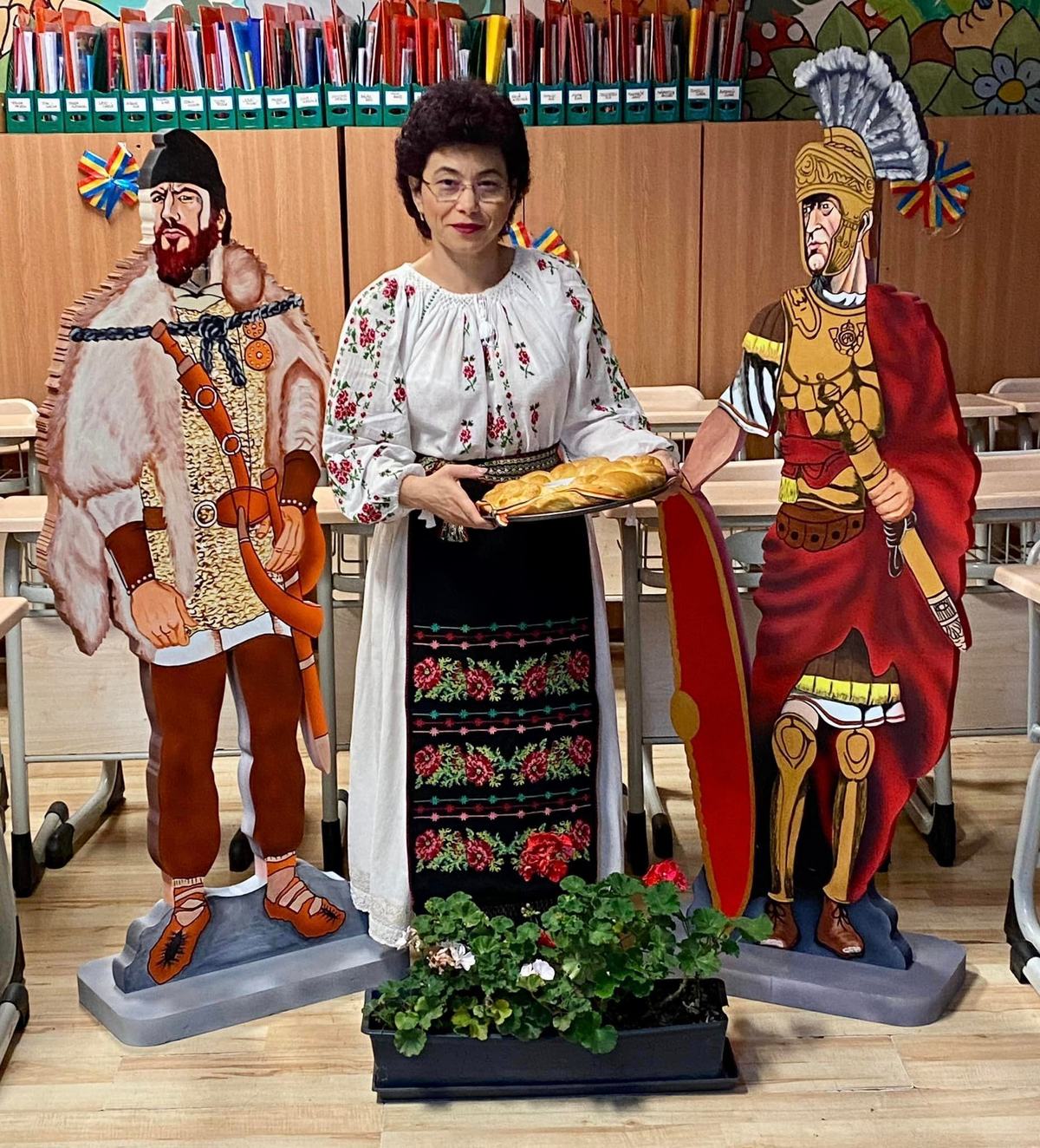 ”Astfel, în fiecare an, noi marcăm Ziua Naţională a României şi Ziua Unirii Principatelor Române fie în sala de clasă, la Muzeul Naţional de Istorie a României, la Mormântul Ostaşului Necunoscut din Parcul Carol sau în excursie, la Mausoleul Eroilor de la Mărăşeşti. Anul acesta, i-am invitat pe elevii mei să vină la şcoală îmbrăcaţi în ie şi i-am aşteptat cu emoţie în clasă, alături de ”asistenţii” mei, soldatul dac şi cel roman, servindu-i cu pâine şi cu sare”, afirmă Consuela Colţan.